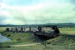 A month after our last visit to the Fraser valley, DRGW 3101, assisted by the 3122, 3065, 3085 and 3041, speeds a manifest east at Tabernash in September, 1974