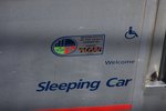 I noticed this on the trailing sleeper (AMTK 32065) - it's one of the Superliners repaired with stimulus funds. It was sidelined after the westbound Sunset tangled with a semi outside Houston on 24 Jan 2003.