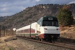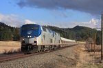 After spending about four months down at the TTC east of Pueblo, the new Talgo VIII set headed up the Joint Line for its new home in the Pacific Northwest on Friday, 12 Apr 2013.