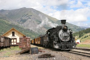 ![]() DSNG 482 leads south past the Silverton depot The rich ore deposits around Silverton are the results of volcanism, much like many other significant mining districts around the western US. In fact, the basin in which Silverton lies is actually an ancient volcanic caldera, formed over 20 million years ago. In the following years, hot water circulated through the fissures in the rock, concentrating rare metals into cracks. Those cracks then became ore veins, waiting beneath the rock for some prospector to come along. Silverton, CO, had its first settlers arrive in 1870 and set up a small mining camp. By 1875, it consisted of over 100 structures to support the mines and miners in the hills above, and also witnessed the opening of the post office and the first school. By 1876, Silverton was formally incorporated and the Denver & Rio Grande officially announced it would build out its rail network towards the new town. Arrival of the narrow gauge rails didn't happen for some six years. It would be early July 1882 before the Silverton Branch was completed, connecting Silverton with Durango and the outside world. By the time mining in the region had run its course, Silverton would have the distinction of being the only town in the US served by four narrow gauge railroads at the same time - the Denver & Rio Grande's Silverton Branch, the Silverton Railroad over Red Mountain?, the Silverton Northern to Animas Forks, and the Silverton, Gladstone & Northerly to Gladstone?. Mining went through a series of boom and bust cycles, but for the most part consolidated to a few worthwhile mines after the Great Depression. None of the other three lines serving Silverton could every really be considered a success, and all were abandoned by the early 1940s. The last active gold mine in Silverton - the famous Sunnyside Mine - closed its doors in 1991, unable to make a profit. Fortunately, another industry had long since taken hold in Silverton, preventing it from dying off like many other gold mining towns that went bust. Of course, that industry was tourism, and was intimately tied to the narrow gauge trains that had hauled miners in and ore out for the decades before. The Rio Grande had wanted to abandon the Silverton Branch in the late 1950s and early 1960s, but was refused by the ICC. Thanks to the persistence of a few individuals and some mild promotion by the Rio Grande, tourist traffic on the Silverton mixed trains began to grow. The Silverton Branch eventually outlasted all of the other narrow gauge routes that linked it to the wider world. Most notably, it survived as 45 miles of isolated line when the rest of the San Juan Extension and Farmington Branch were ripped out in 1970. Today, Silverton gets over a hundred thousand tourists delivered to them every year from Durango by the Durango & Silverton Narrow Gauge Railroad. Silverton Depot BombingAround noon on Friday, 12-Sep-1975, the southeast end of the Silverton depot was ripped apart by a charge of dynamite. The exact time varies between between 1150h-1153h, depending on the report. Despite rewards offered by the railroad, the San Juan County Historical Society, and the town of Silverton, and investigative efforts by law enforcement all the way up to the FBI and ATF, no one was ever convicted of the crime. By 1975, the railroad had already donated the building to the San Juan Historical Society. The society undertook the estimated $15,000 repair job using $5000 in insurance money, combined with donations from individuals. Donors giving more than $5 were offered a square nail from the damaged section of the structure, and those giving more than $1 were sent a copy of the "Wanted" poster printed up to advertise the arrest reward money ($2000). Olathe Construction Company was awarded the contract to rebuild the damaged structure, and wrapped up the job in late November of the same year, only a bit over 2 months after the bombing occurred. (Most of this information gleaned from The Silverton Standard, the local newspaper, as reprinted inside the restored Silverton depot today.) Maps and PhotosCategories: Locations |
